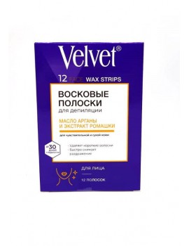 Velvet Воск полоски д/депил ЛИЦА д/чувств кожи МАСЛО АРГАНЫ+ЭКСТ РОМАШКИ 12шт/919258/24