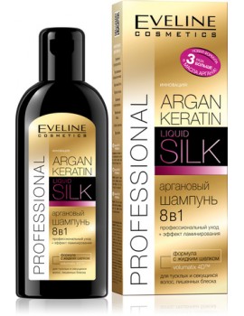 Eveline ARGAN KERATIN+LIQUID SILK Шампунь 8 в 1 д/тусклых и секущихся волос 150 мл